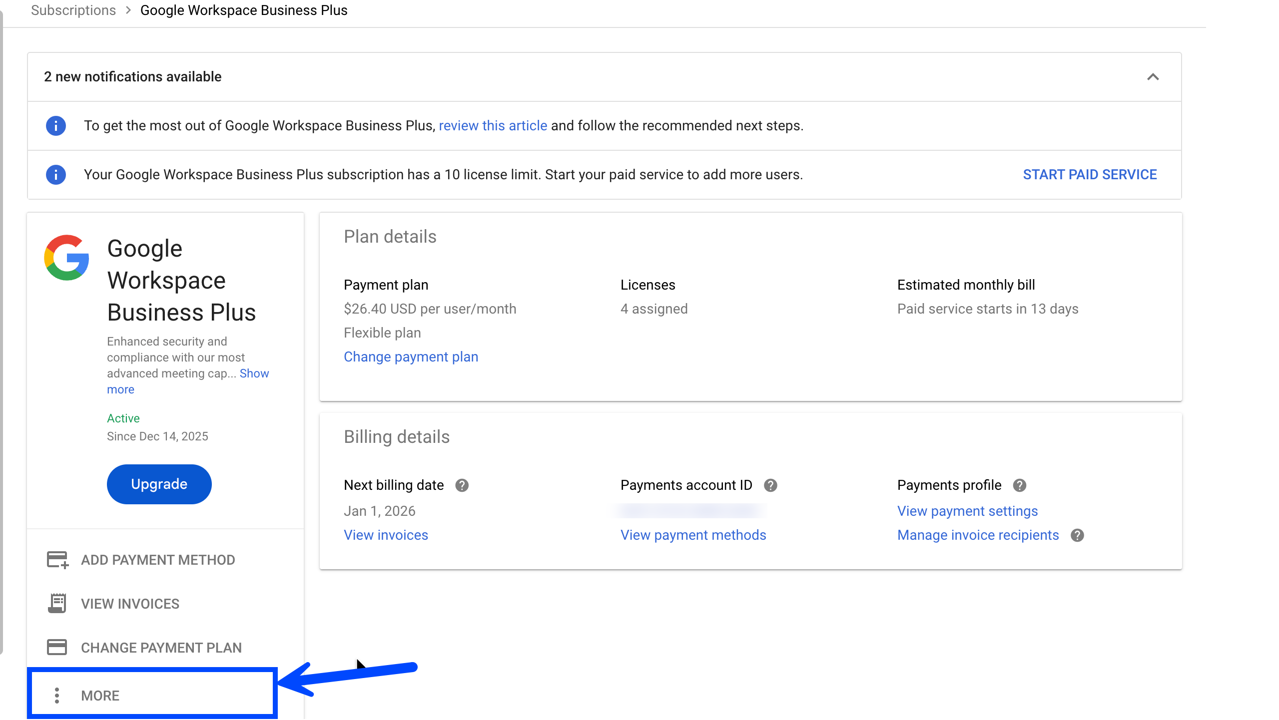 Pro Tip : There is also a very less known (free) subscription by Google which allows you to still cancel your Workspace subscription but keep your domain registered and verified with Google. If you have really decided to cancel your subscription, I would highly recommend you to consider this.