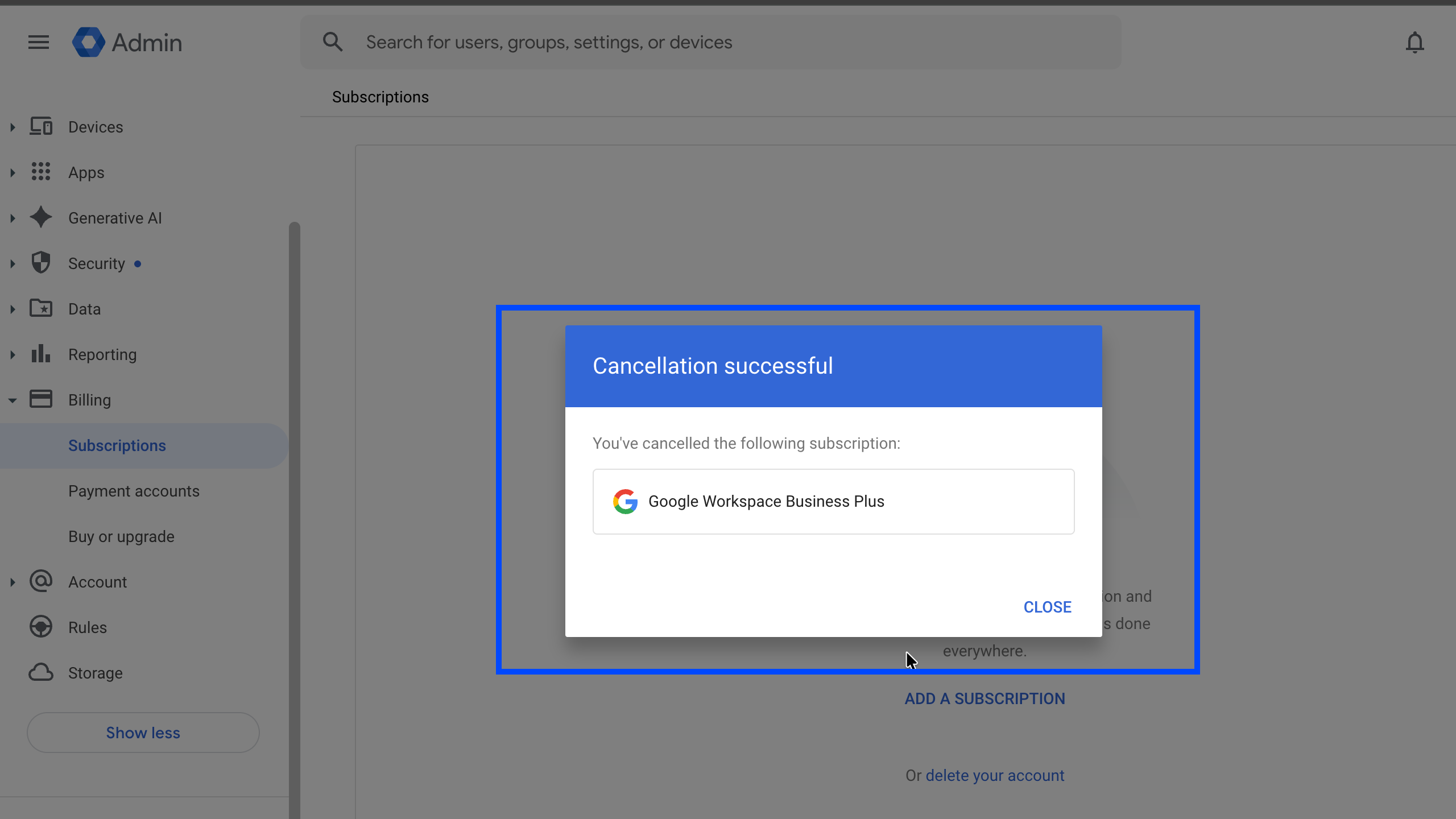 Google will now warn you about the impacts of your Workspace subscription cancellation.