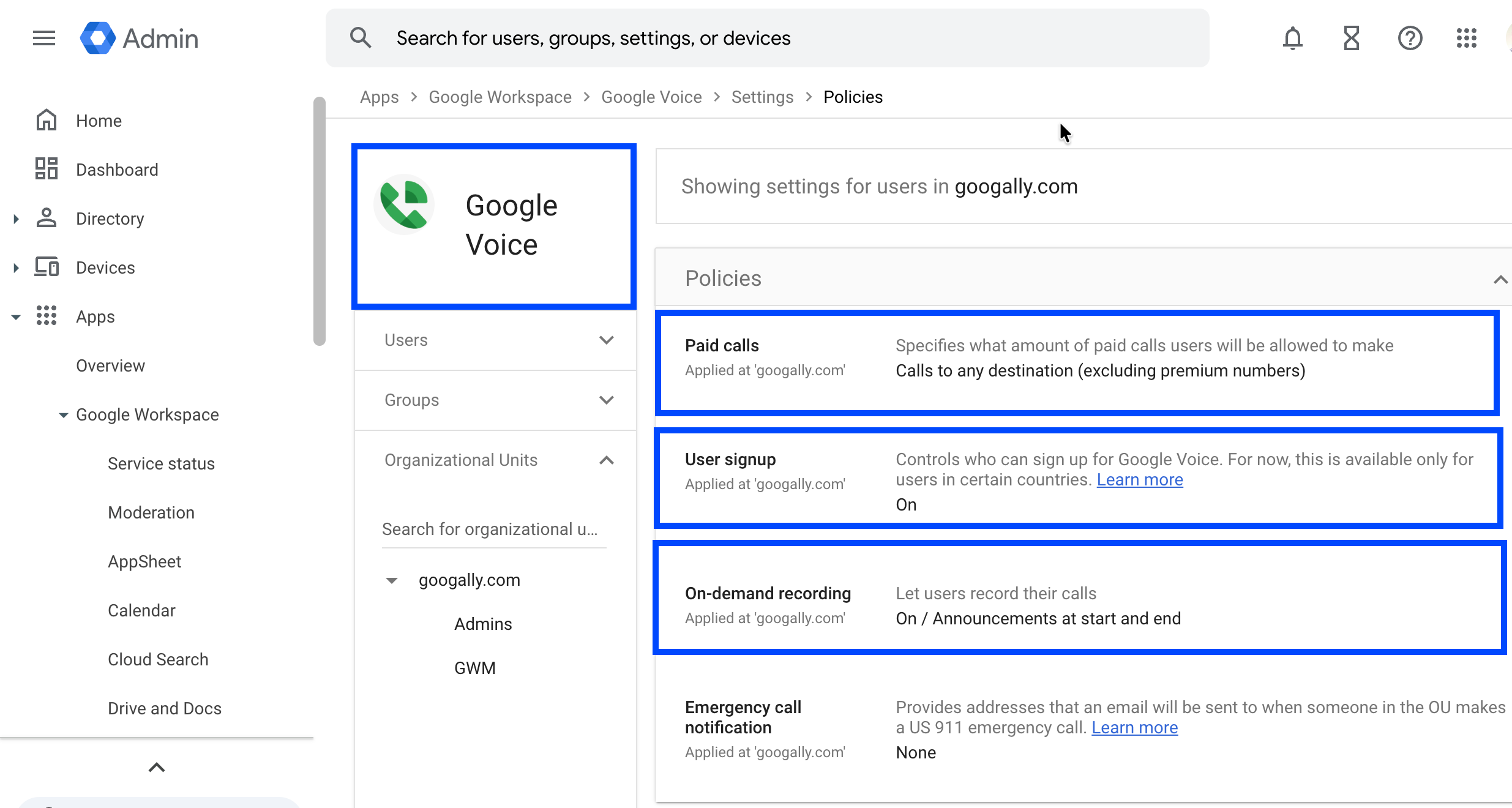 Adding Voice to existing Google Workspace accounts takes minutes through the Admin Console. There's no separate vendor relationship or complex phone system to manage.