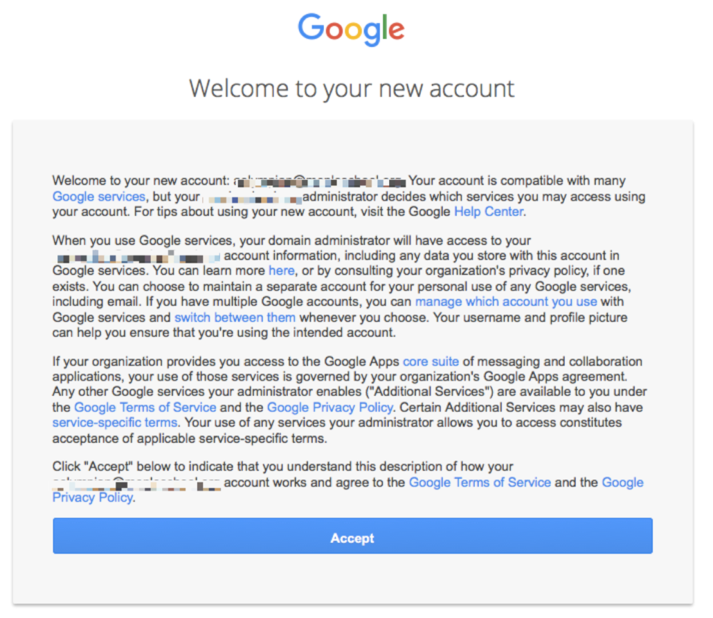 After you have “Accepted” Google’s terms and conditions, you are presented with the following options…